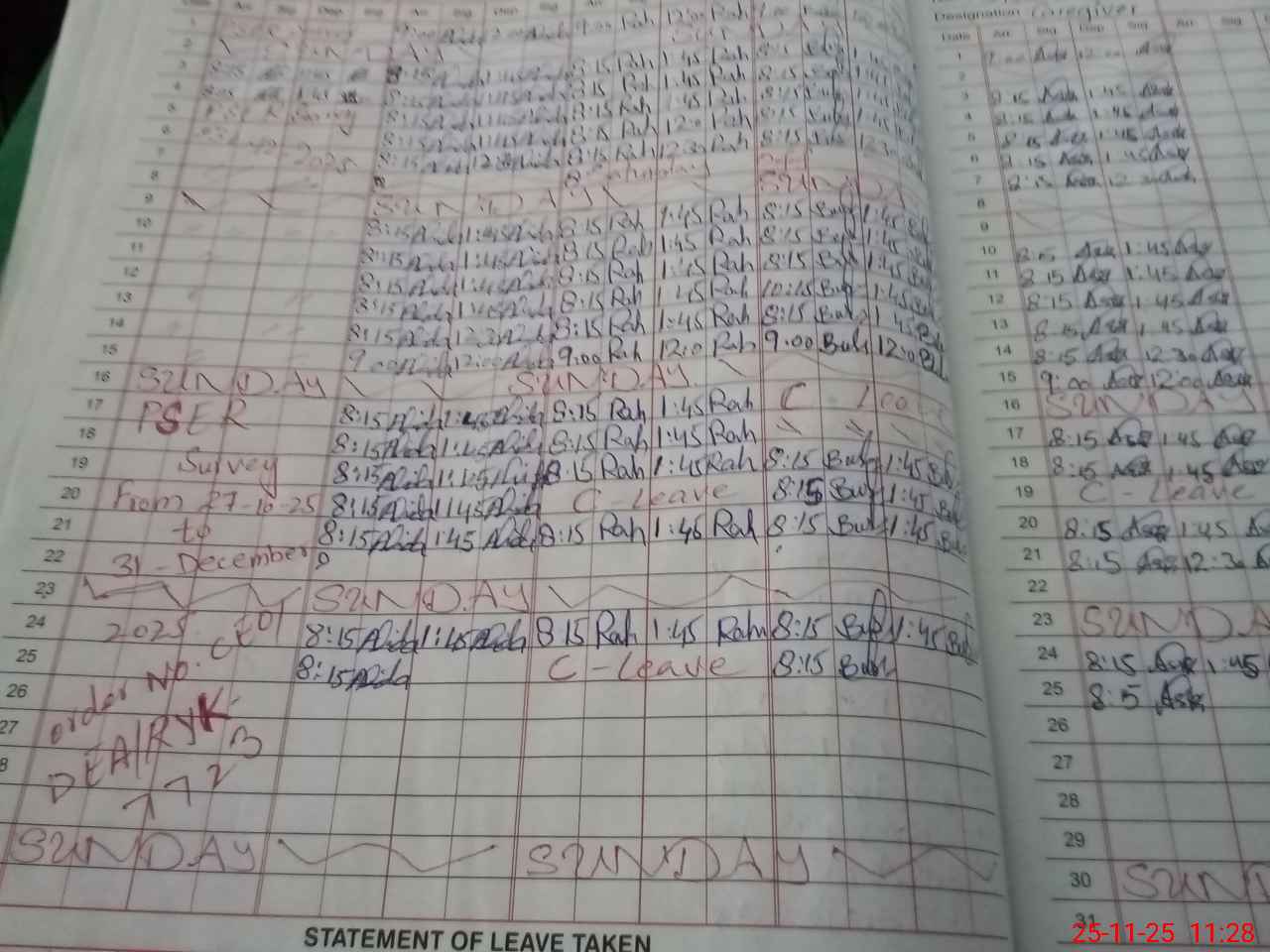 | Leave | Duty | Absent | Maternity | Medical | Ex- Pak |