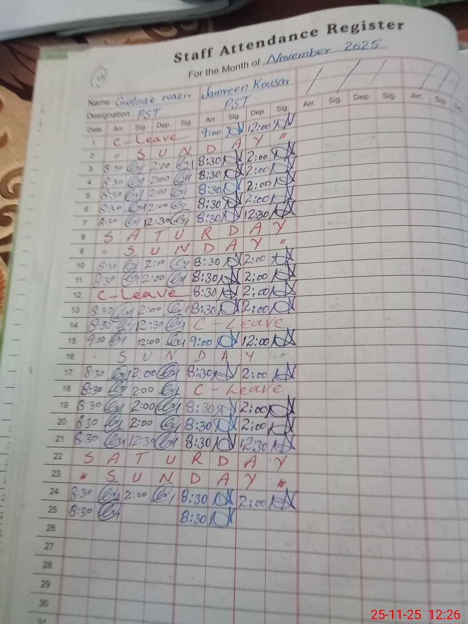 | CNIC | Full Name | Designation | R/C | Absence During Last Calender Month |