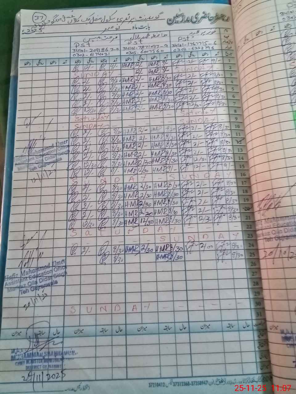 | CNIC | Full Name | Designation | R/C | Absence During Last Calender Month |