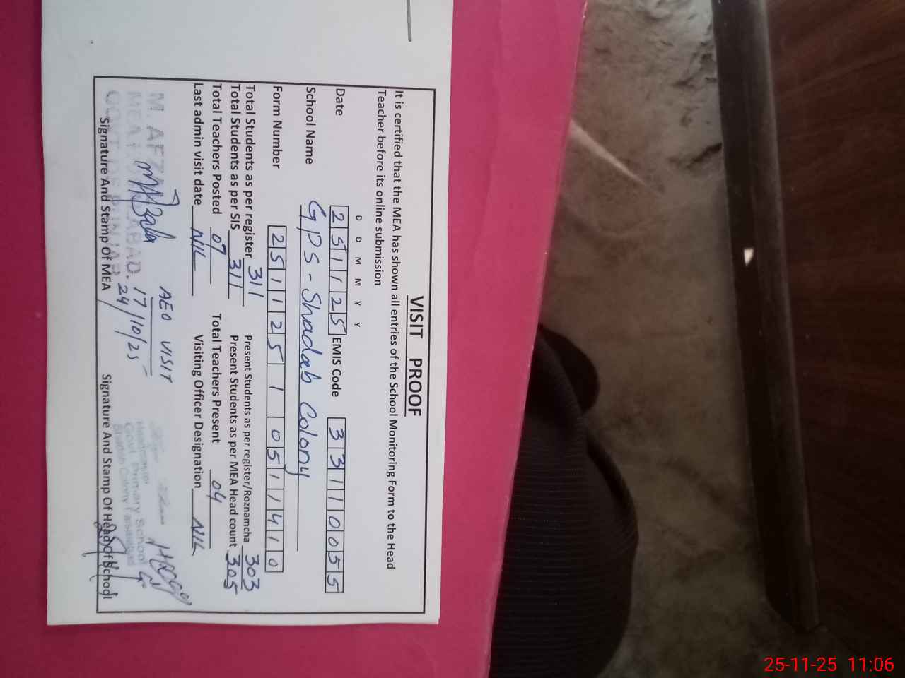 | EMIS Code: 33110055 | Name of School: GPS SHADAB COLONY | |||