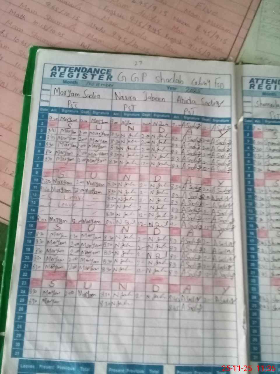 | CNIC | Full Name | Designation | R/C | Absence During Last Calender Month |
