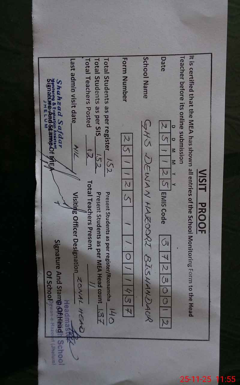 | EMIS Code: 37230012 | Name of School: GHS DEWAN HAZOORI (BISHANDAUR) | |||