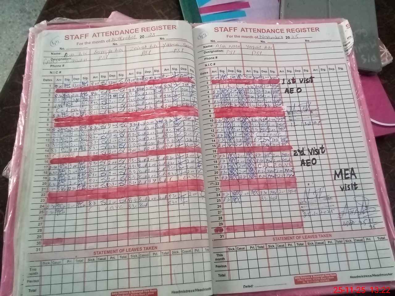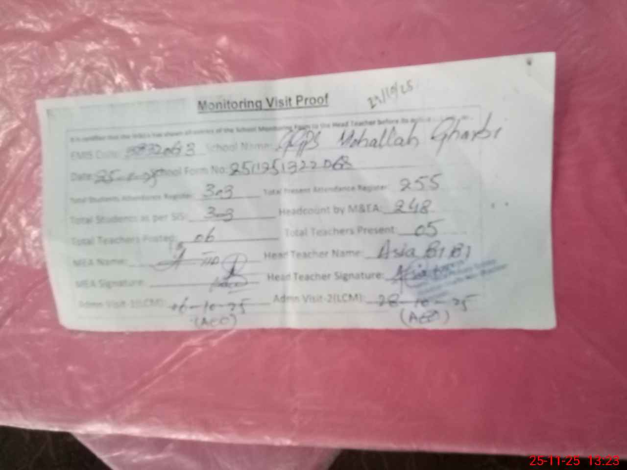 | Attendance Register | Head Teacher | MEA with School | Visit Proof |