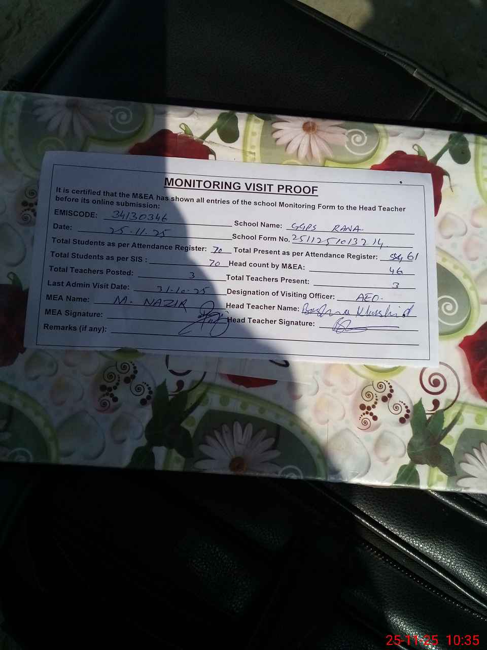 | EMIS Code: 34130346 | Name of School: GGPS RANA | |||