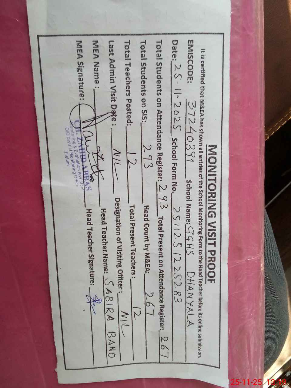 | EMIS Code: 37240391 | Name of School: GGHS DHANYALA | |||