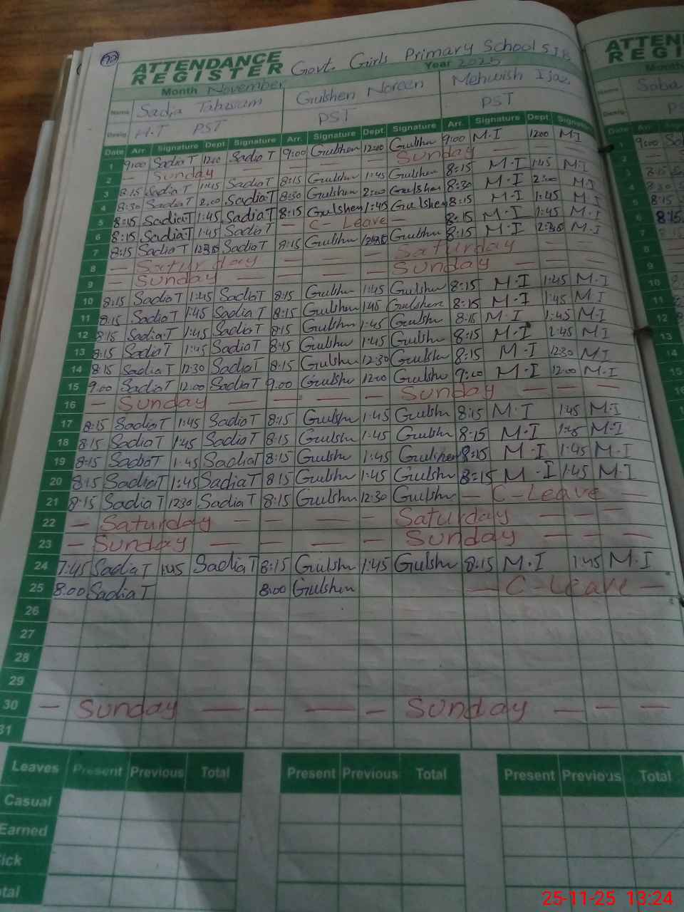 | Leave | Duty | Absent | Maternity | Medical | Ex- Pak |