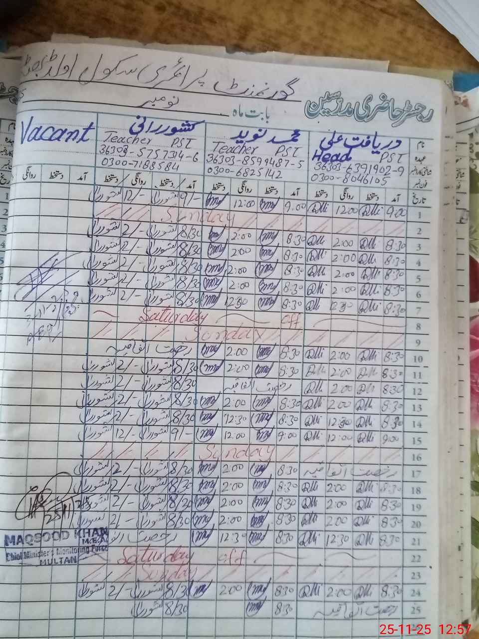| Name: Da**** Al**** Designation: (School Headmaster's/Headmistress's) PST Phone/Cell Number: 03**** |