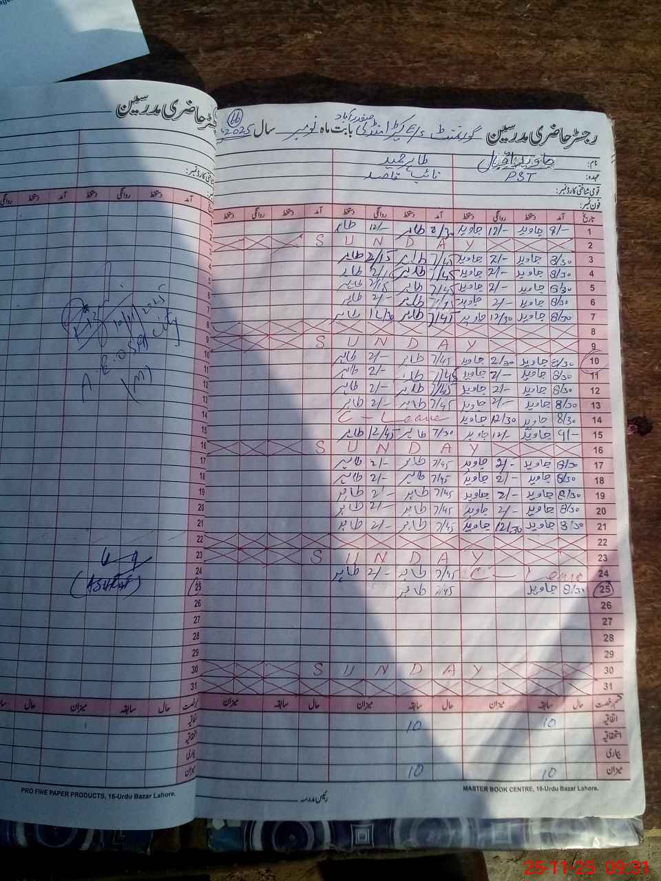 | CNIC | Full Name | Designation | R/C | Absence During Last Calender Month |