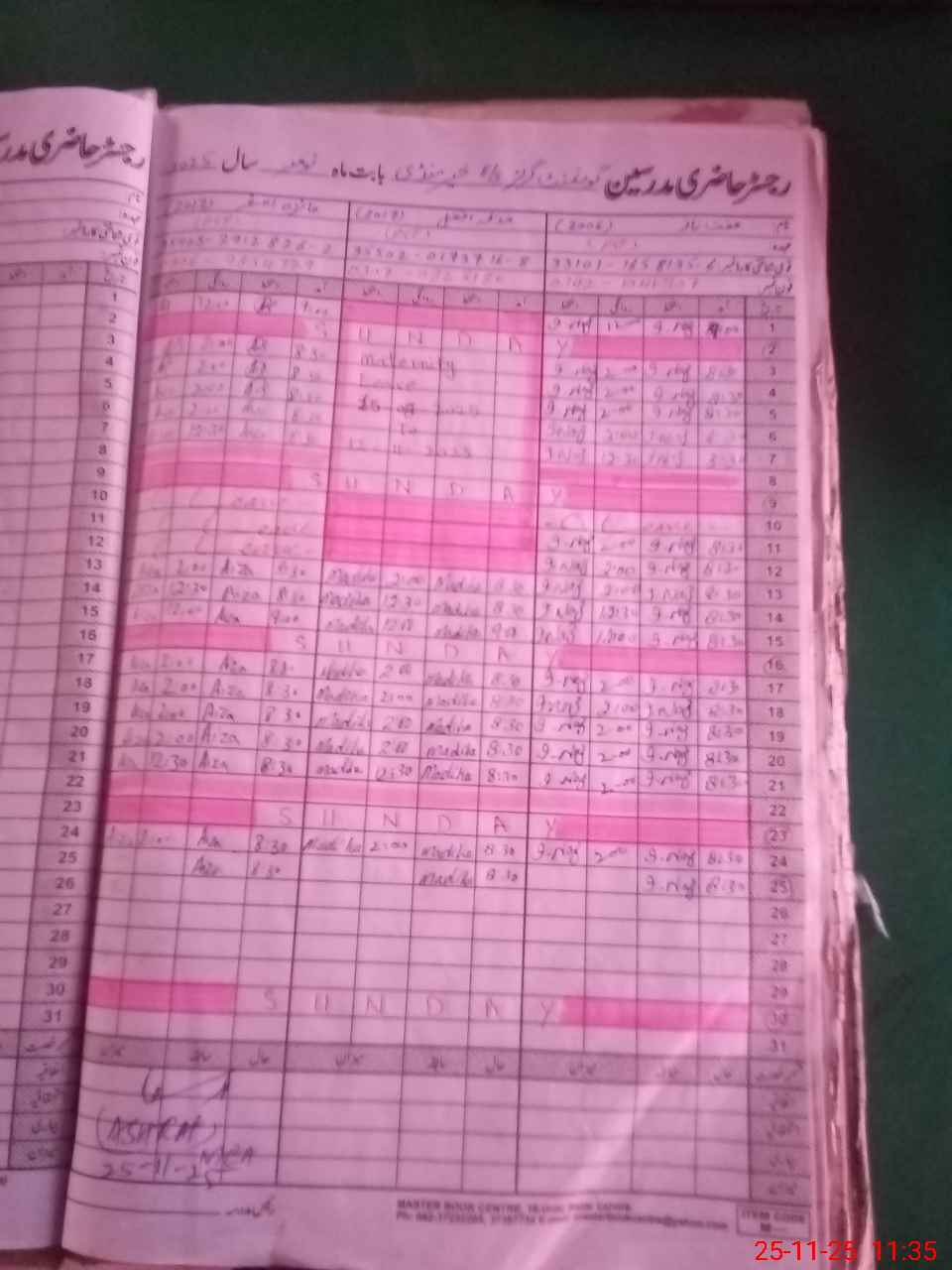 | CNIC | Full Name | Designation | R/C | Absence During Last Calender Month |