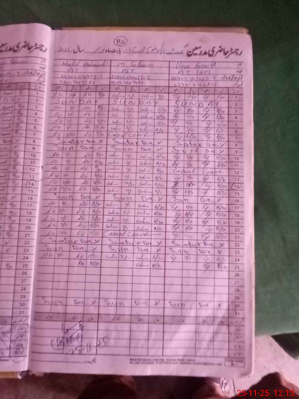 | CNIC | Full Name | Designation | R/C | Absence During Last Calender Month |