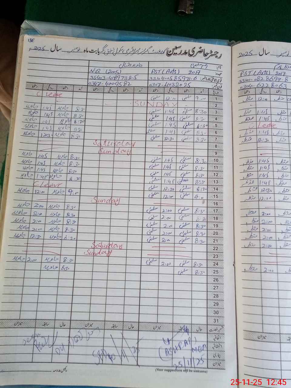 | CNIC | Full Name | Designation | R/C | Absence During Last Calender Month |