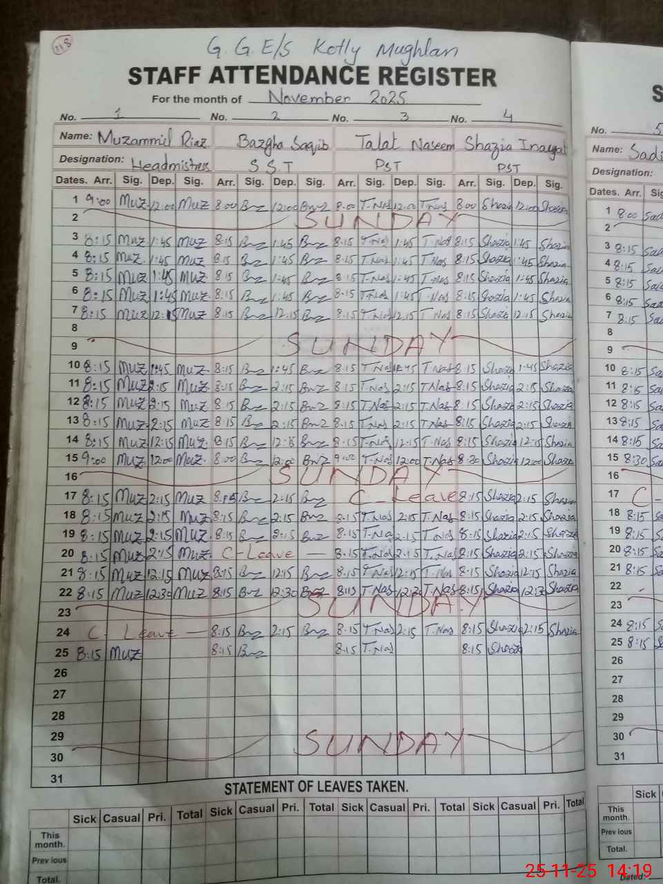 | CNIC | Full Name | Designation | R/C | Absence During Last Calender Month |