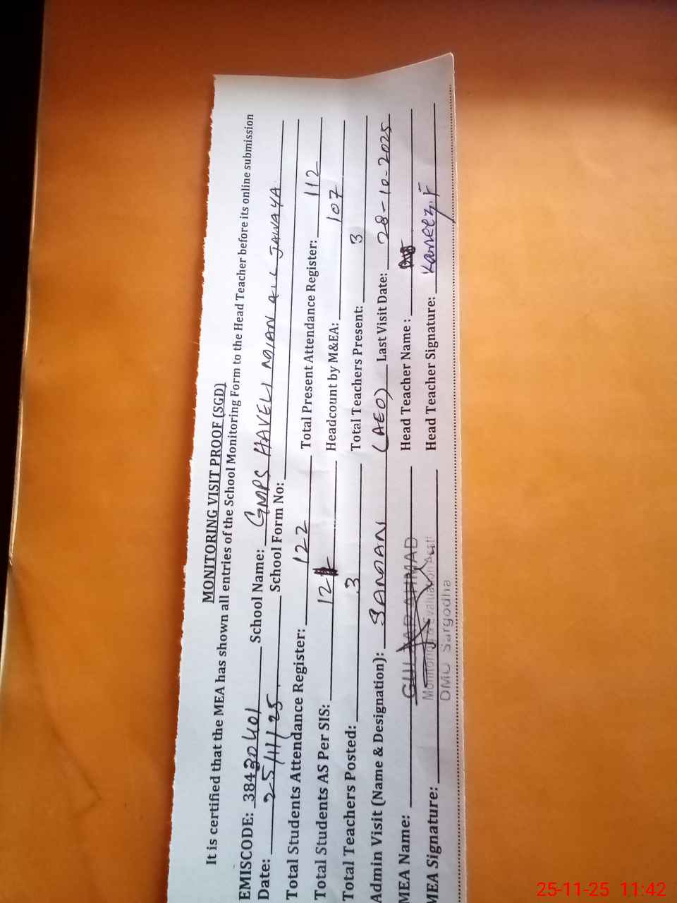 | EMIS Code: 38430401 | Name of School: GMPS HAVELI MIAN ALLAH JAWAYA | |||