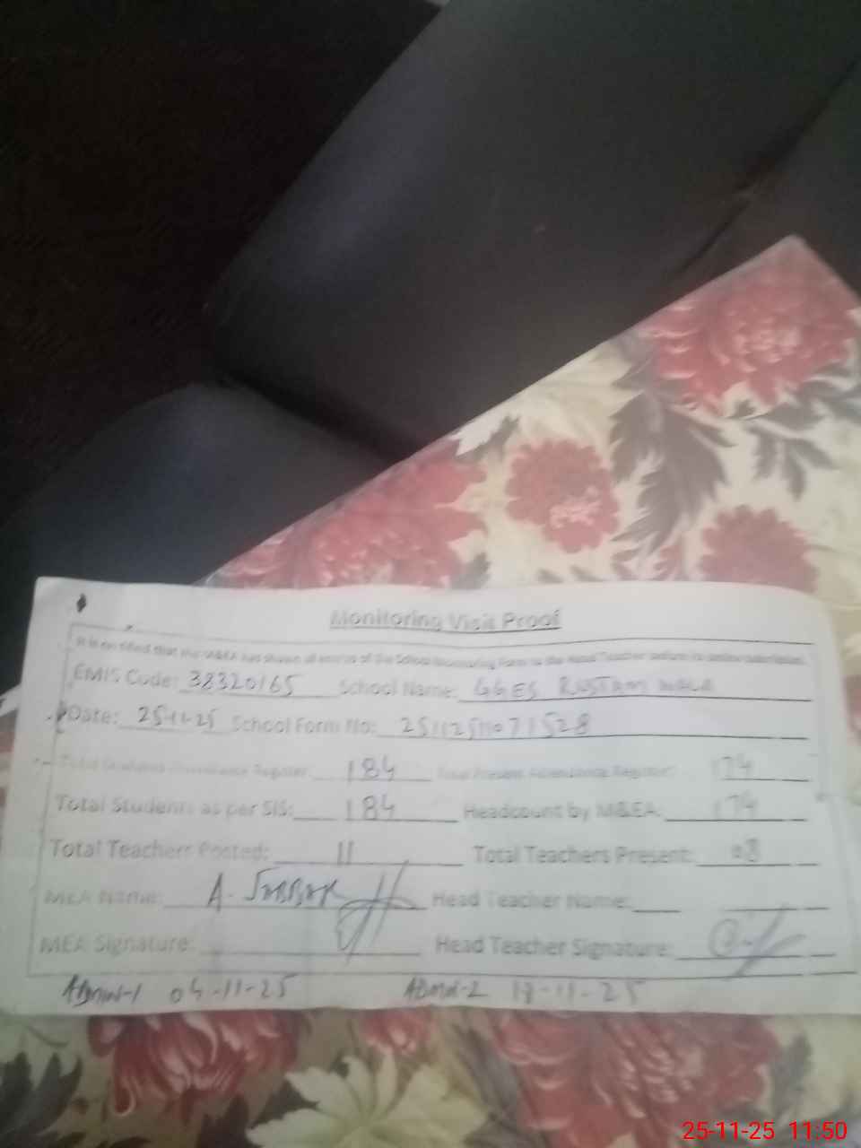 | Attendance Register | Head Teacher | MEA with School | Visit Proof |
