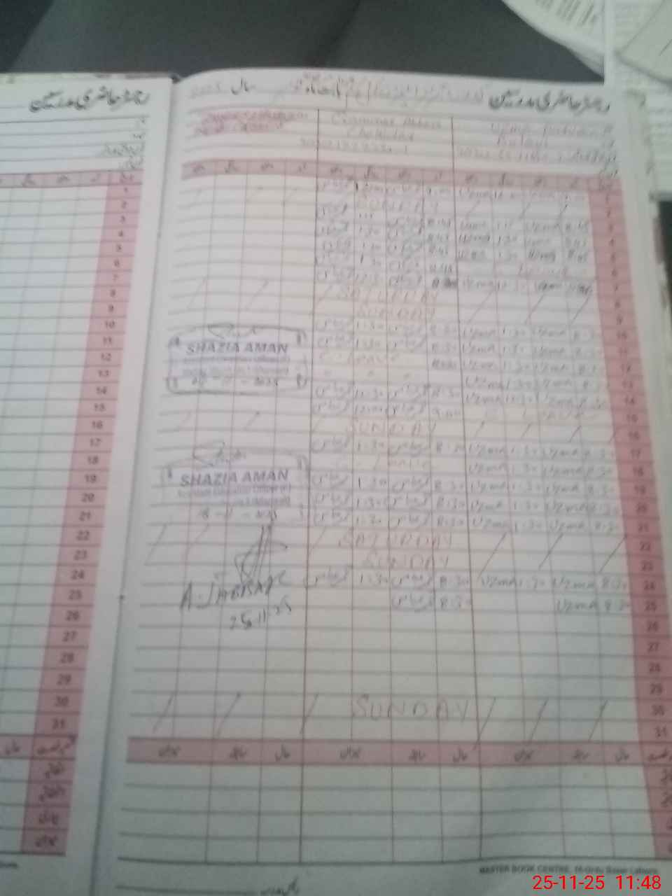 | CNIC | Full Name | Designation | R/C | Absence During Last Calender Month |