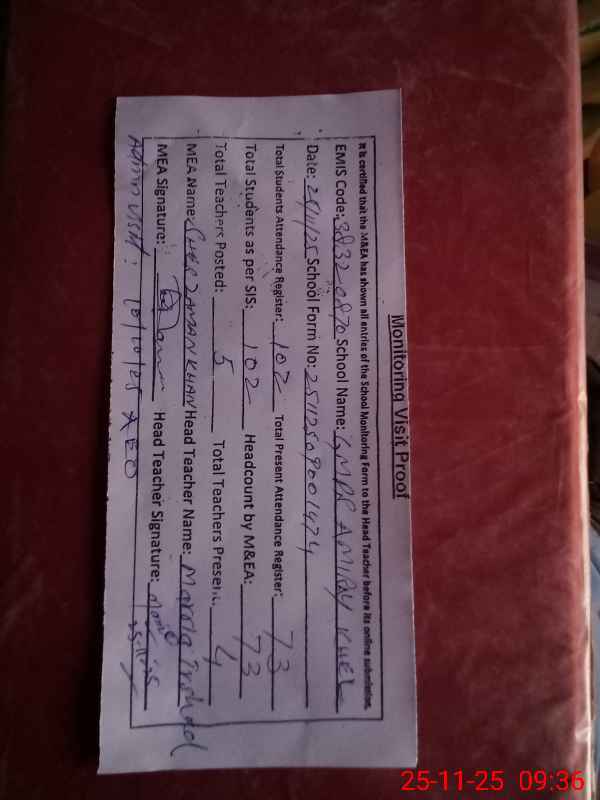| Attendance Register | Head Teacher | MEA with School | Visit Proof |
