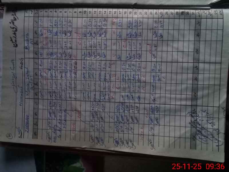| CNIC | Full Name | Designation | R/C | Absence During Last Calender Month |