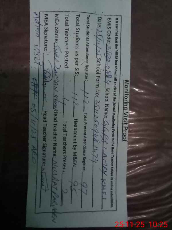 | EMIS Code: 38320884 | Name of School: GGPS LAMEY KHEL | |||