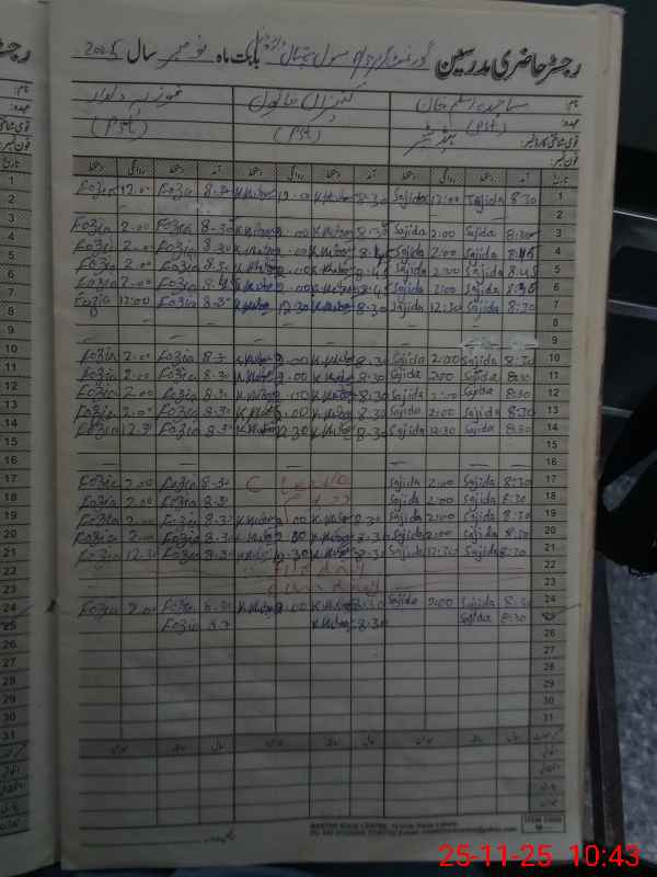 | CNIC | Full Name | Designation | R/C | Absence During Last Calender Month |