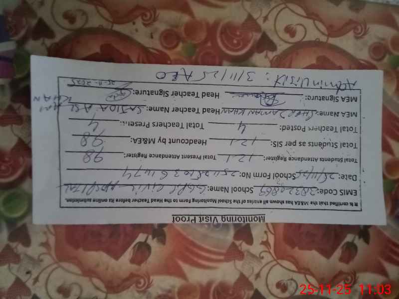 | Monitoring Date: 25-11-2025 | Start Time: 25-11-2025 10:35 AM | End Time: 25-11-2025 11:06 AM | Name of MEA: SH**** ZA**** | |