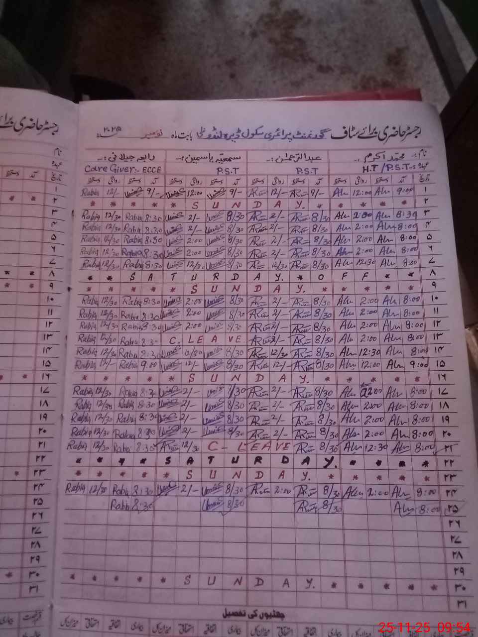 | CNIC | Full Name | Designation | R/C | Absence During Last Calender Month |