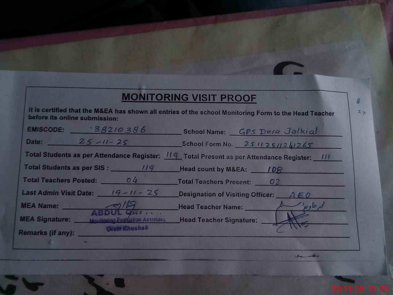 | EMIS Code: 38210386 | Name of School: GPS DERA JALKIAL | |||