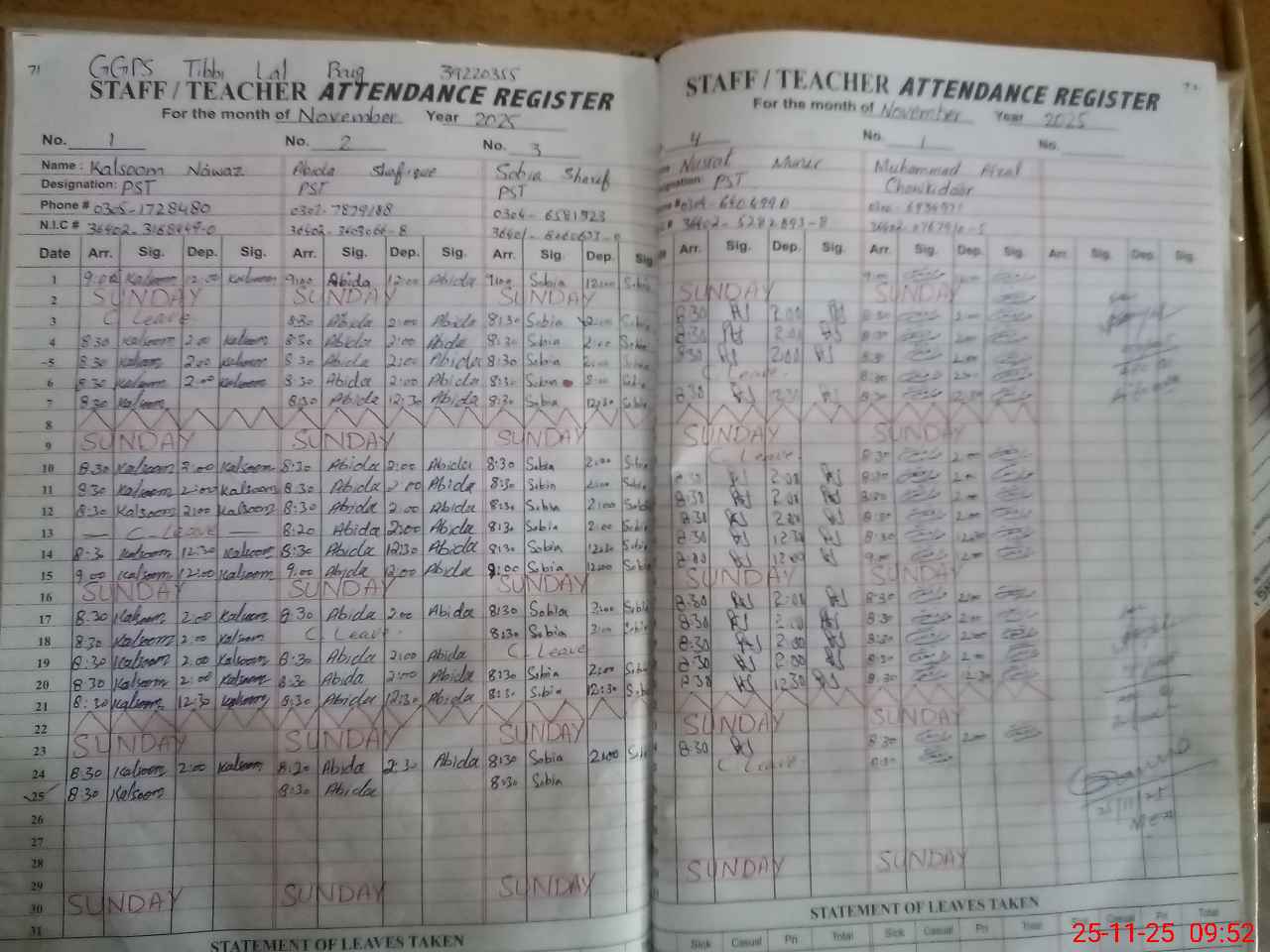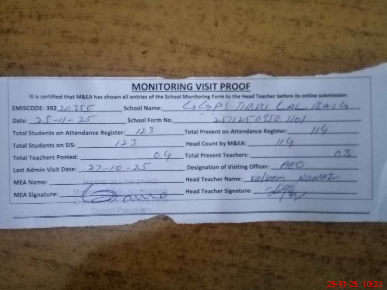 | EMIS Code: 39220355 | Name of School: GGPS TIBBI LAL BAIG | |||