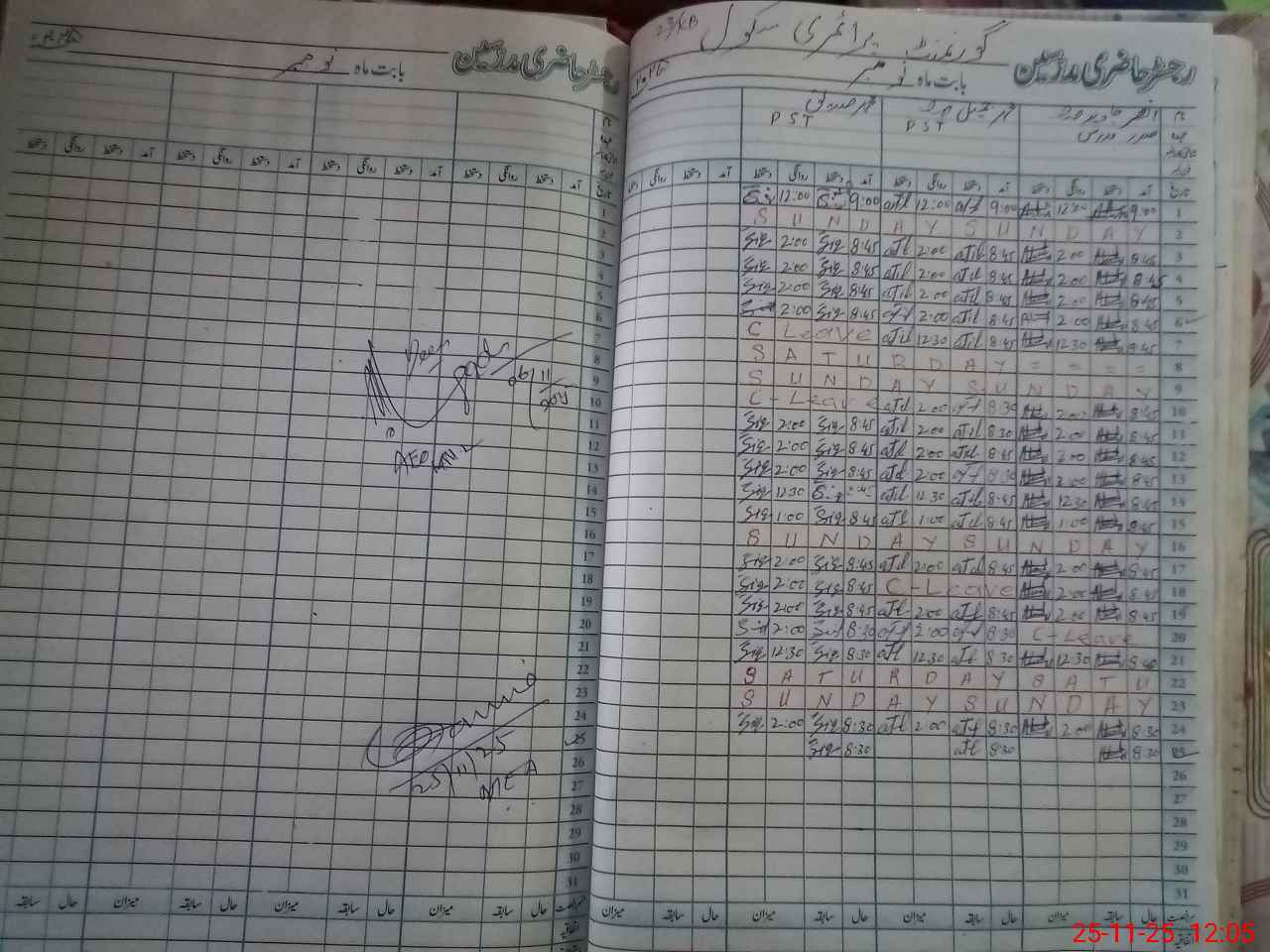 | CNIC | Full Name | Designation | R/C | Absence During Last Calender Month |