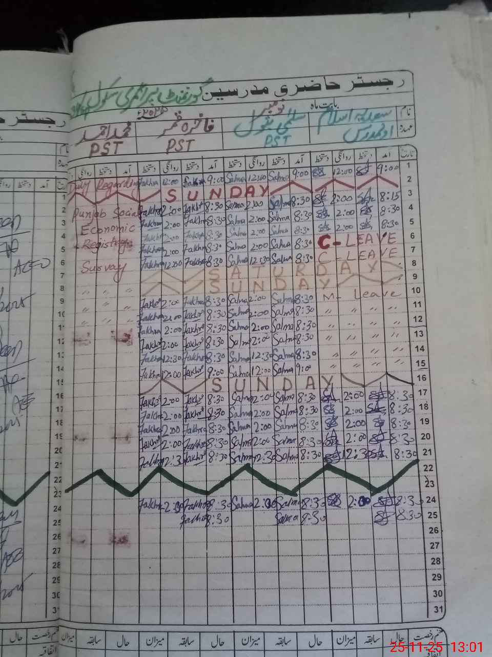 | CNIC | Full Name | Designation | R/C | Absence During Last Calender Month |