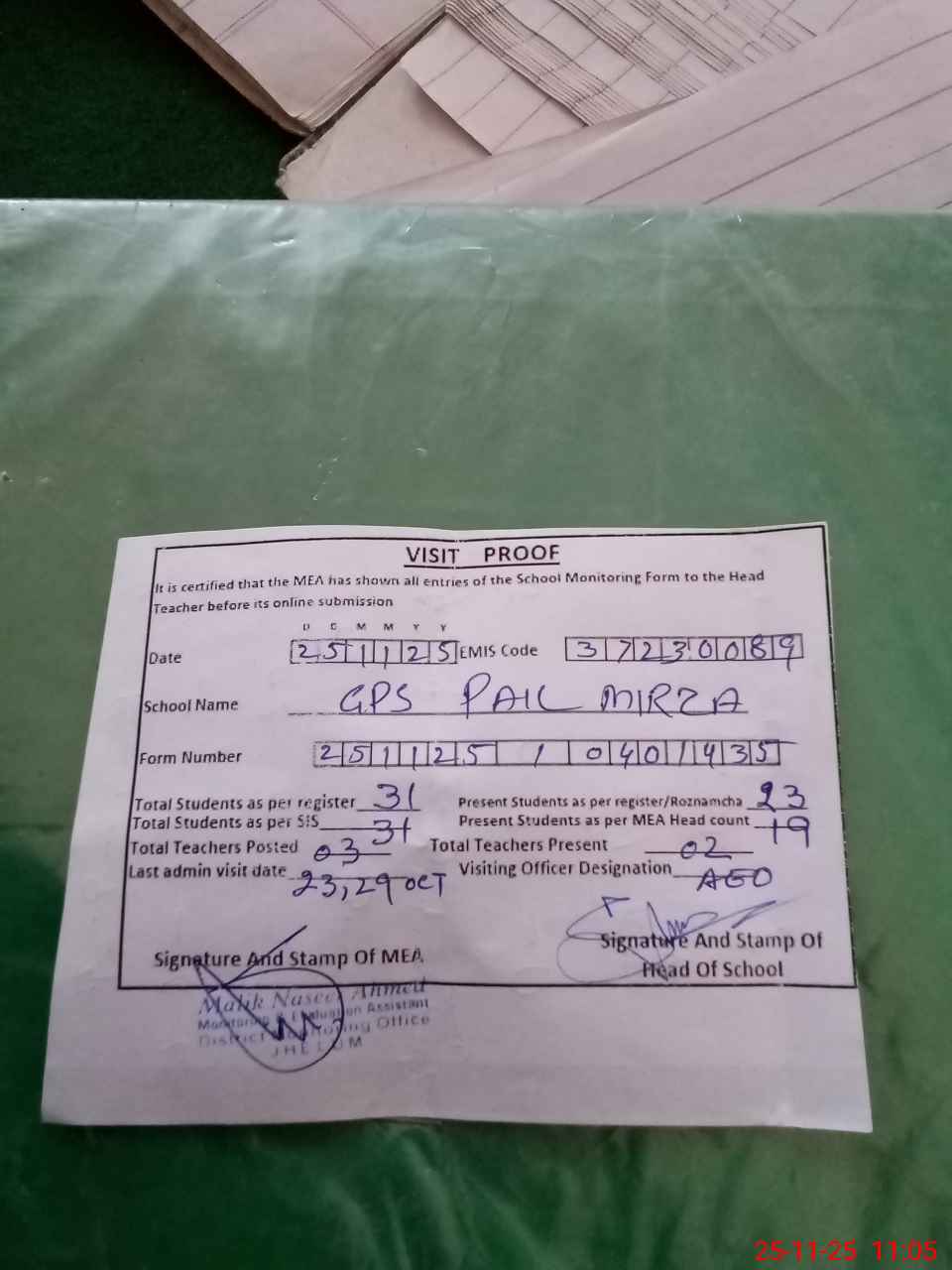 | EMIS Code: 37230089 | Name of School: GPS PAIL MIRZA | |||