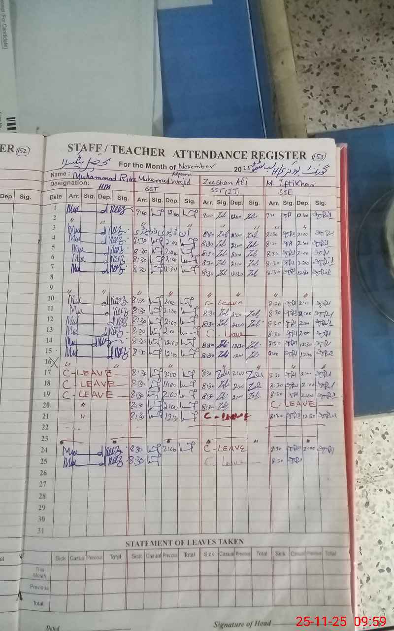 | Name: MRi**** Designation: (School Headmaster's/Headmistress's) S.S.T.(SC) Phone/Cell Number: 03**** |