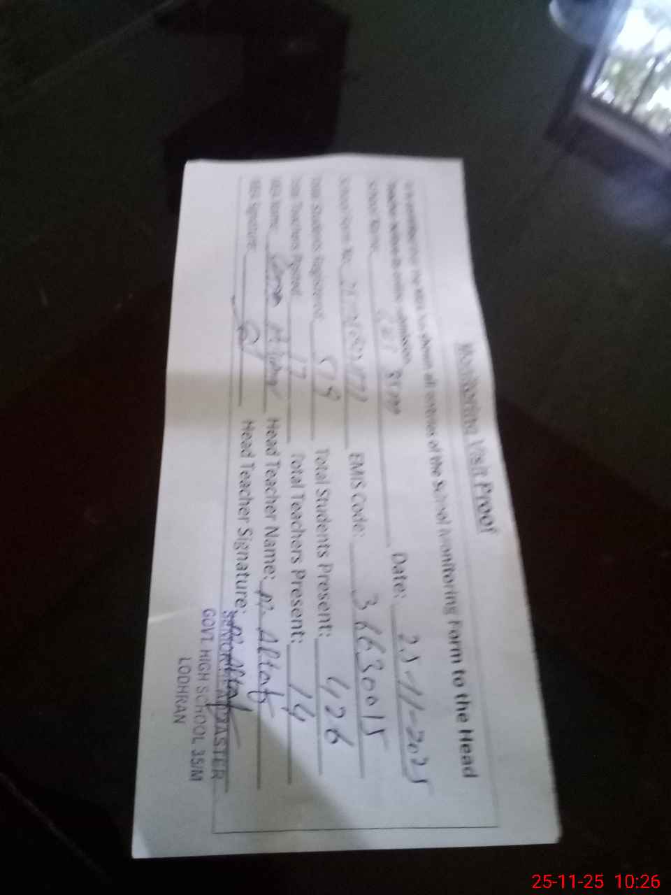 | Monitoring Date: 25-11-2025 | Start Time: 25-11-2025 09:22 AM | End Time: 25-11-2025 10:26 AM | Name of MEA: Kh**** Sa**** Hu**** | |