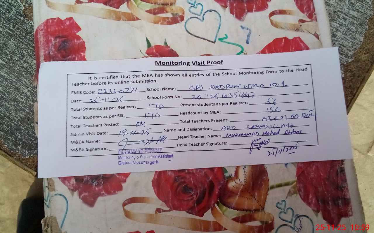 | EMIS Code: 32320771 | Name of School: GPS DADRAY WALA NO. 1 | |||