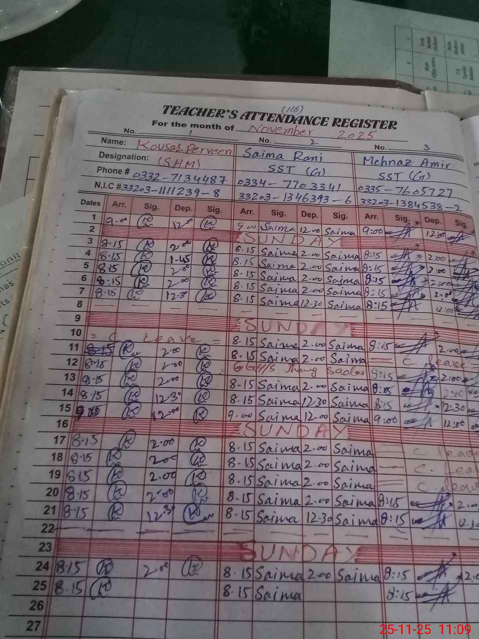 | Name: SA**** RA**** Designation: (School Headmaster's/Headmistress's) SST Phone/Cell Number: 03**** |