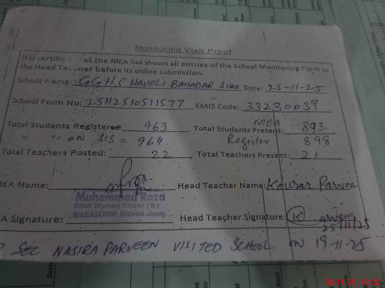 | EMIS Code: 33230039 | Name of School: GGHS HAVELI BAHADAR SHAH | |||