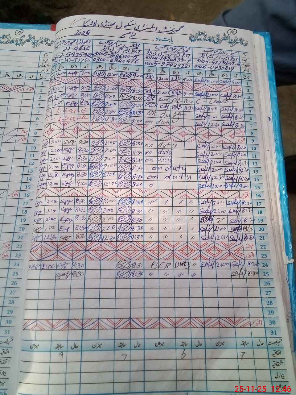 | Leave | Duty | Absent | Maternity | Medical | Ex- Pak |