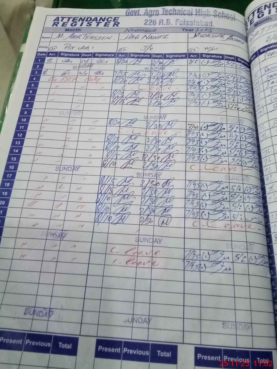 | CNIC | Full Name | Designation | R/C | Absence during last cal. month |