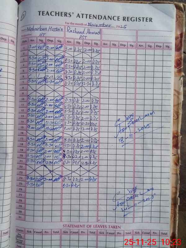 | Name: ME**** HU**** Designation: (School Headmaster's/Headmistress's) PST Phone/Cell Number: 03**** |