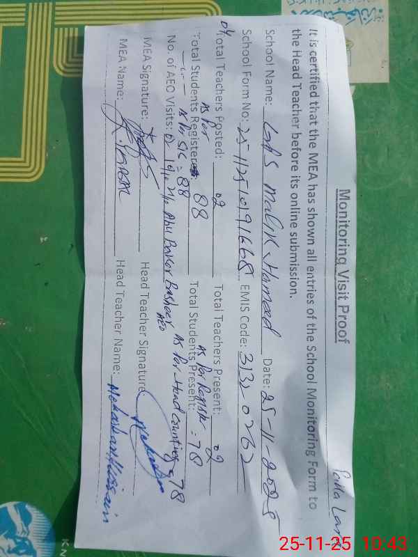 | EMIS Code: 31320262 | Name of School: GPS MALIK HAMEED | |||