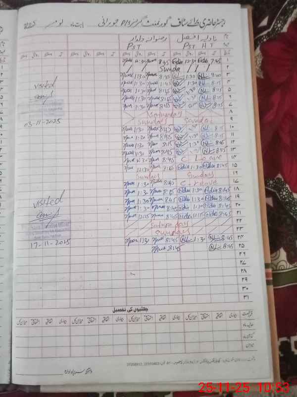 | CNIC | Full Name | Designation | R/C | Absence During Last Calender Month |