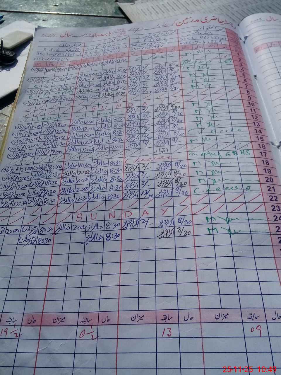 | 31**** | Wa**** As**** | BALDAR | 7 | 0 | 0 | 0 | 0 | 0 | 0 | 0 | 7 | Absent (Un-Authorized) | |