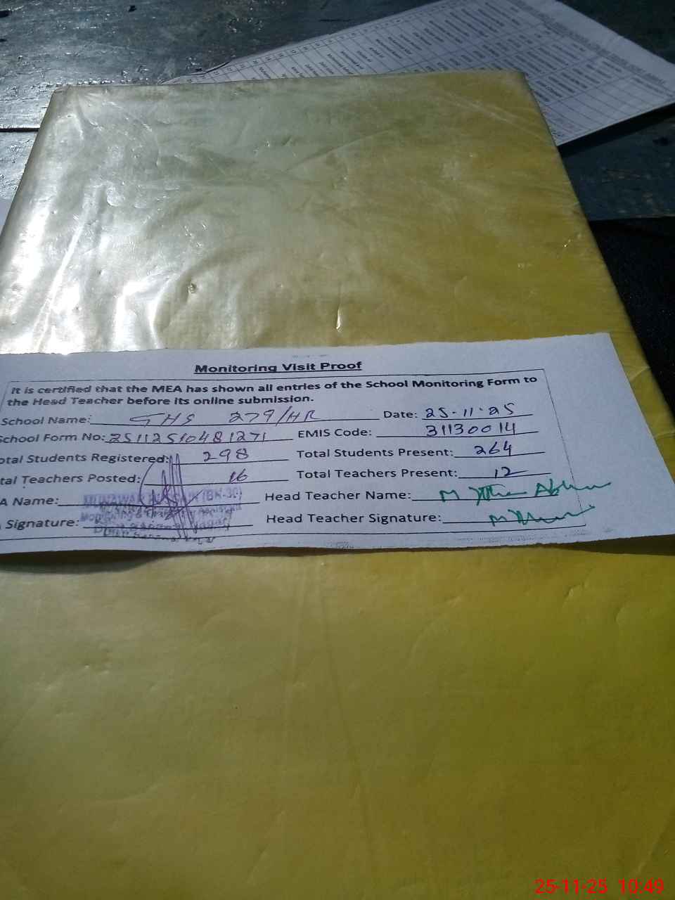 | Attendance Register | Head Teacher | MEA with School | Visit Proof |
