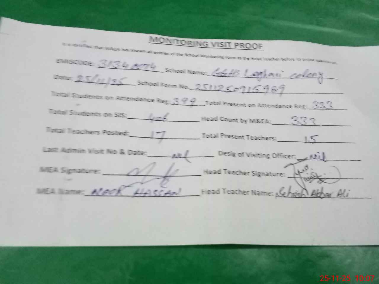 | Certified that this School was Inspected by the Undersigned MEA/DMO Today and the Information Stated Above is as Per Record. | |||||