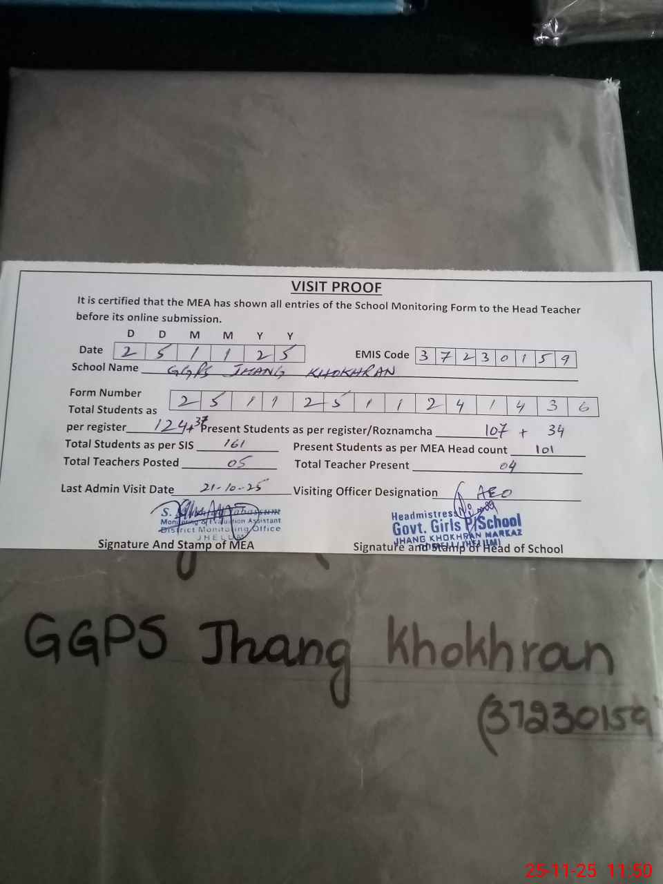 | EMIS Code: 37230159 | Name of School: GGPS JHANG KHOKHRAN | |||