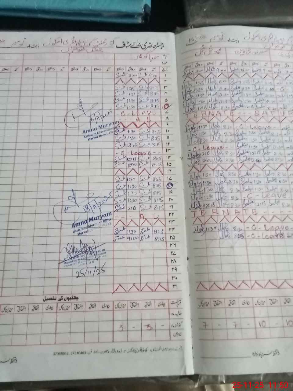 | CNIC | Full Name | Designation | R/C | Absence During Last Calender Month |