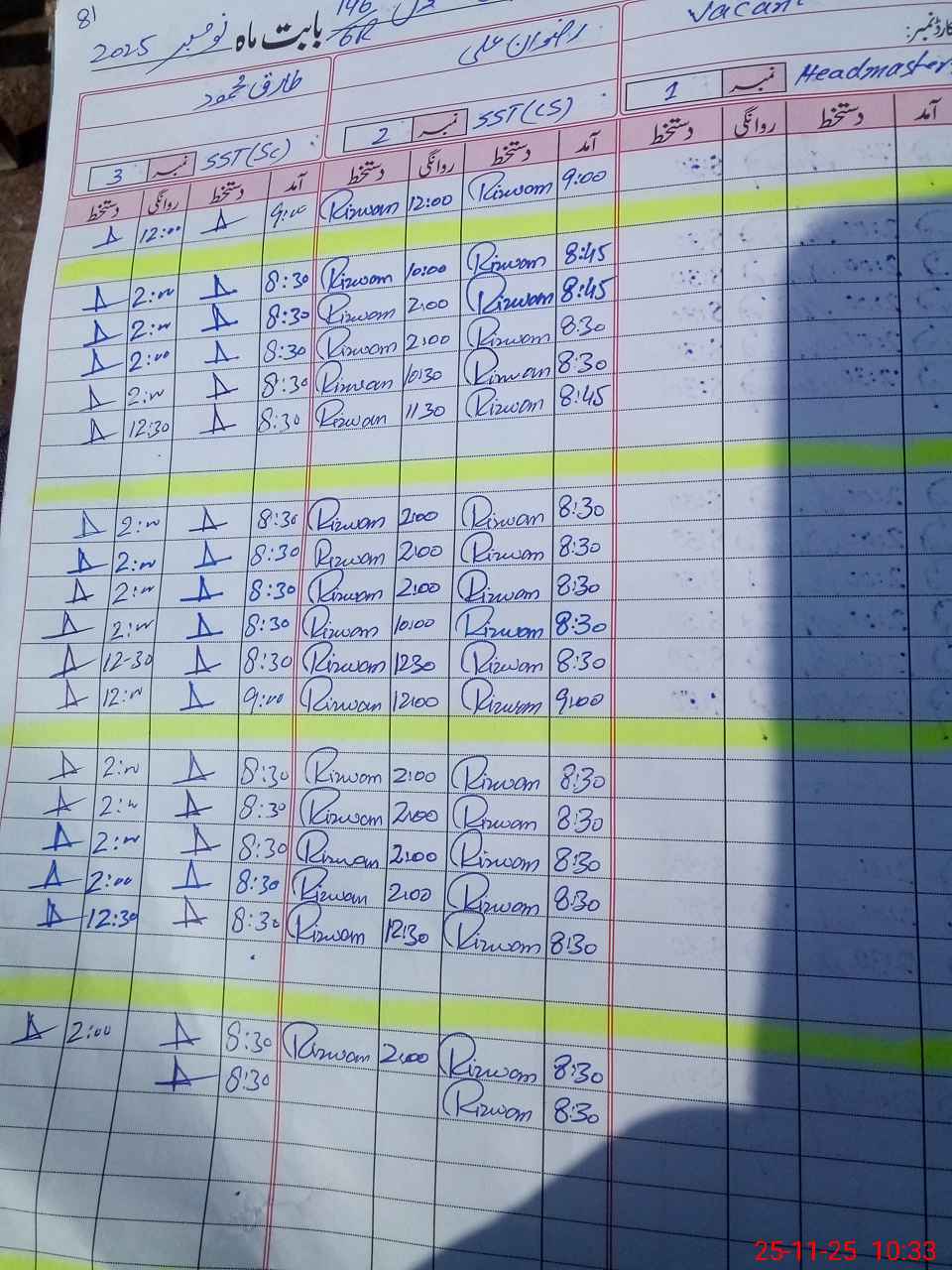 | CNIC | Full Name | Designation | R/C | Absence During Last Calender Month |