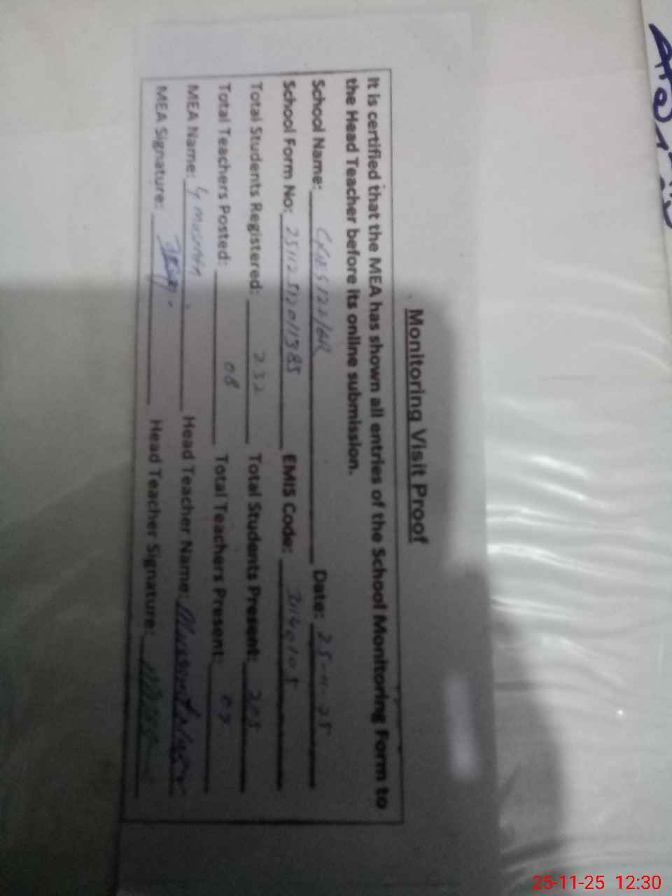 | Certified that this School was Inspected by the Undersigned MEA/DMO Today and the Information Stated Above is as Per Record. | |||||