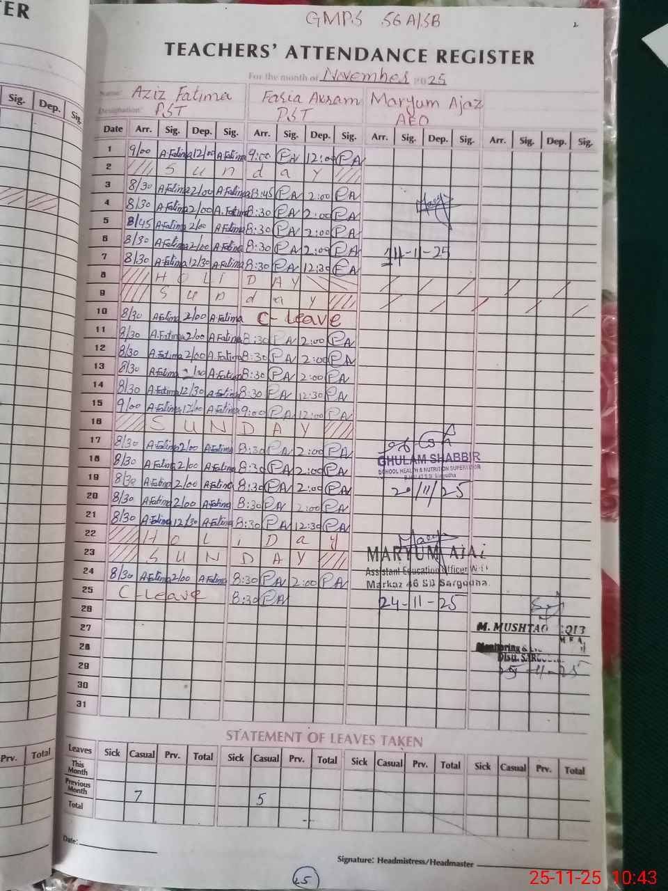 | Name: AZ**** FA**** Designation: (School Headmaster's/Headmistress's) PST Phone/Cell Number: 03**** |