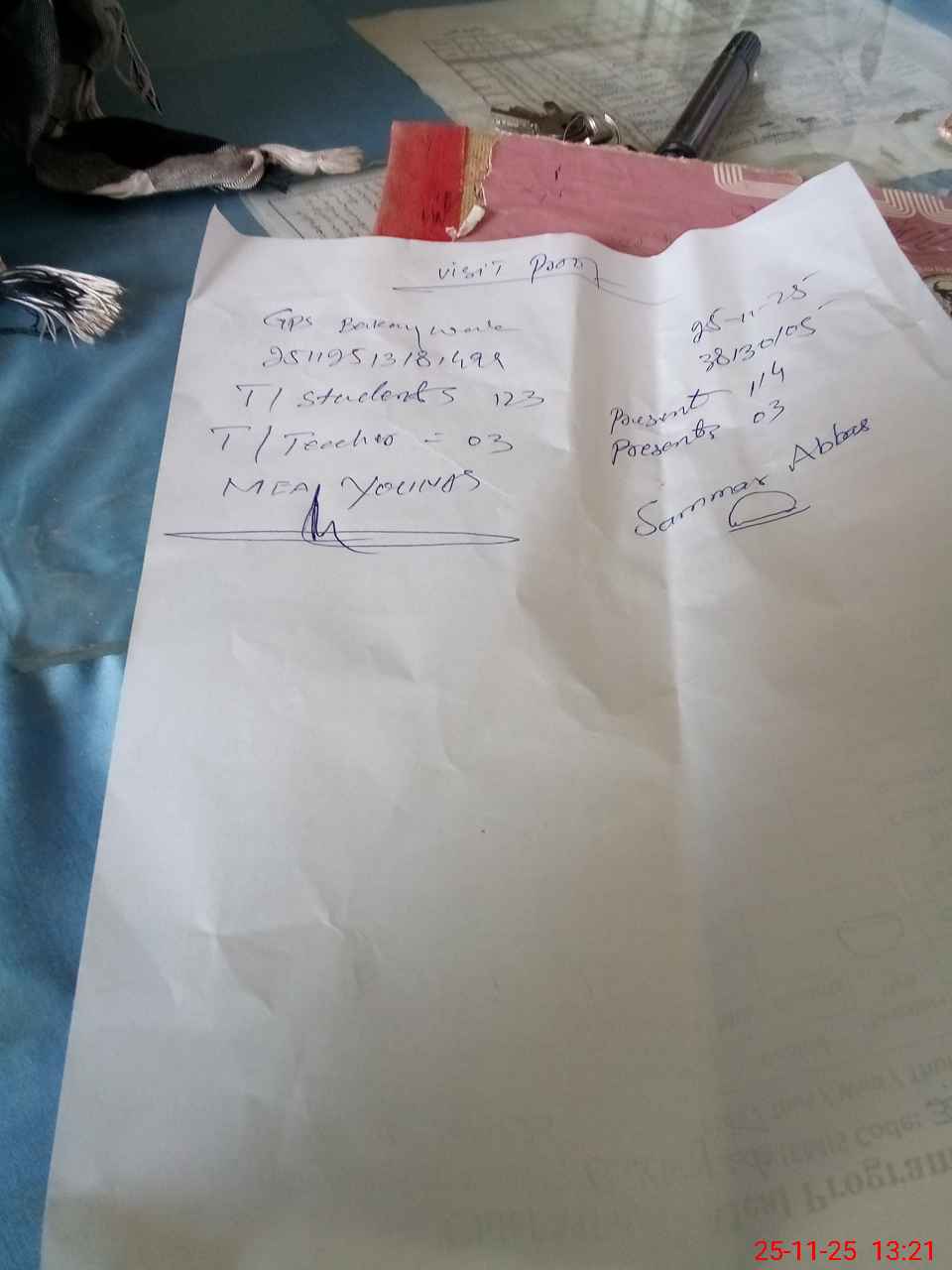 | Attendance Register | Head Teacher | MEA with School | Visit Proof |