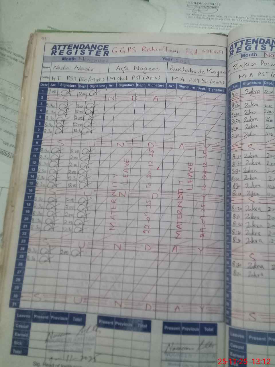 | 33**** | Ar**** Na**** | Regular | 31 | 0 | 0 | 31 | 0 | 0 | 0 | 0 | 0 | Maternity | |